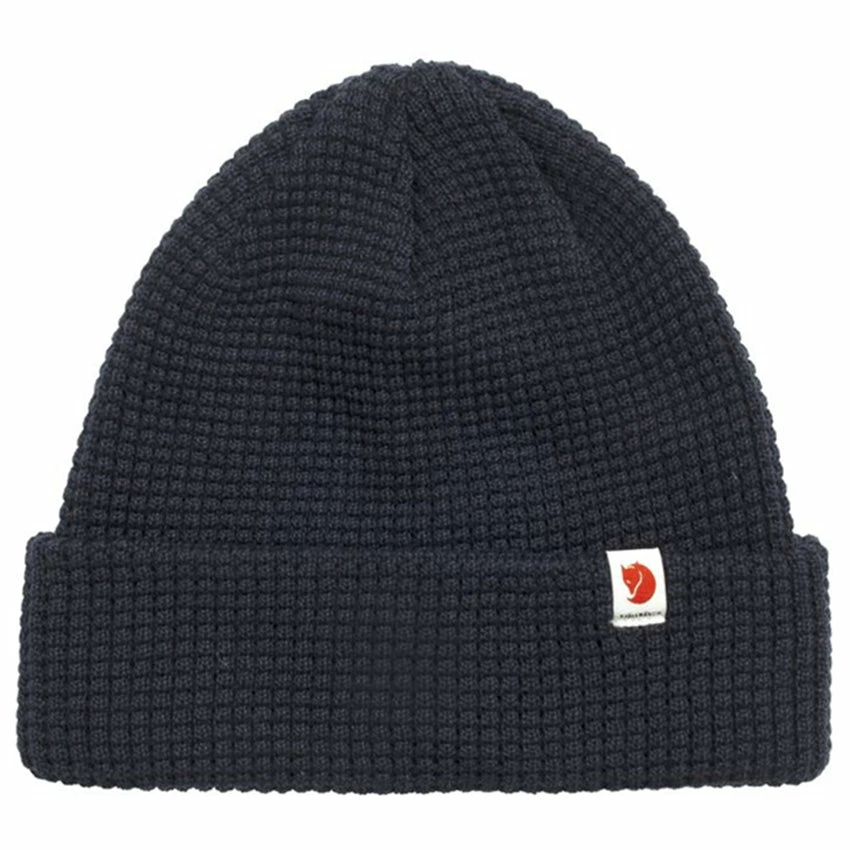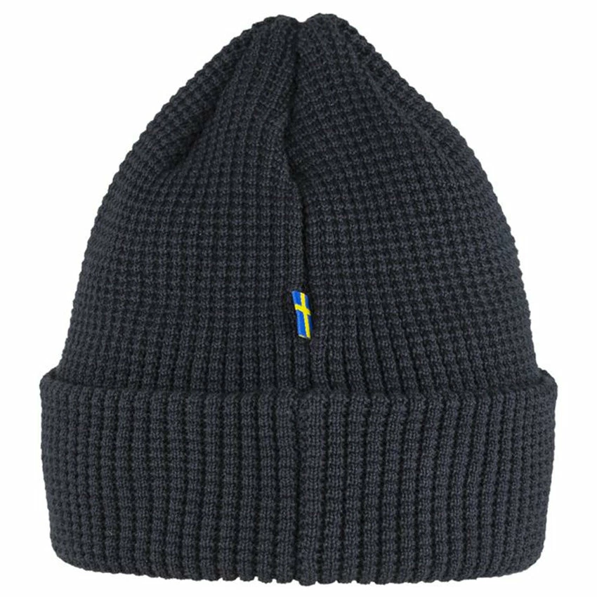A soft, comfortable knitted hat from Fjällräven made from 100% recycled polyester. With a decorative waffle-knit and wide fold-up edge – the material of the Tab Hat wicks away moisture and dries fast, so it works well for both everyday life and when out on the hills. Small Fjällräven logo tab on the folded edge.