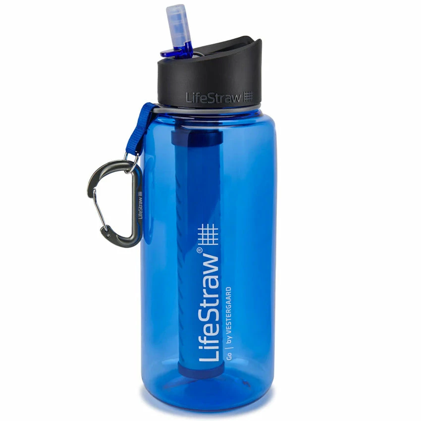 - Includes: water bottle, water filter, cap with silicon mouthpiece, carabiner