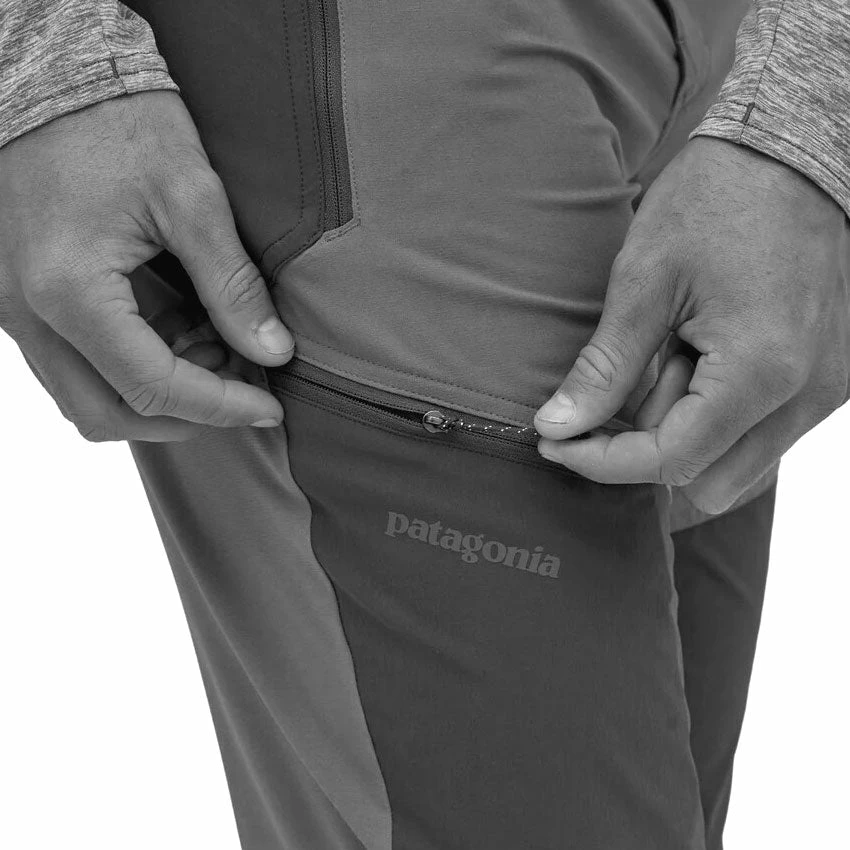A lightweight recycled polyester/elastane blend provides excellent stretch for greater mobility. Durable recycled nylon/recycled elastane paneling where it matters provides extra protection from rock and abrasion. Designed with climbing in mind, the articulated pattern allows ultimate mobility for long approaches and all-day comfort under a harness. This comfort is enhanced by the lie-flat construction of the pockets, and the secure front pockets and right rear pocket have breathable mesh pocket bags.