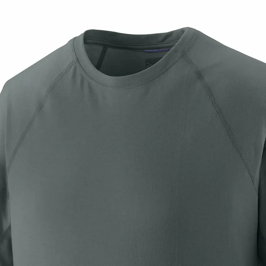 Made with 70% recycled polyester and 30% Naia™ Renew – an innovative material that’s a blend of renewable wood pulp and postconsumer plastics) – the feel is soft next to the skin, stretchy, resists odours and wicks moisture. The Capilene Cool Trail Shirt has set-in sleeve construction with underarm gussets that offer chafe-free comfort when layering and a range of motion. Tagless design for itch-free comfort, and small locker loop to make it easy to hang dry. Small Patagonia P-6 woven label at the left-front hem.