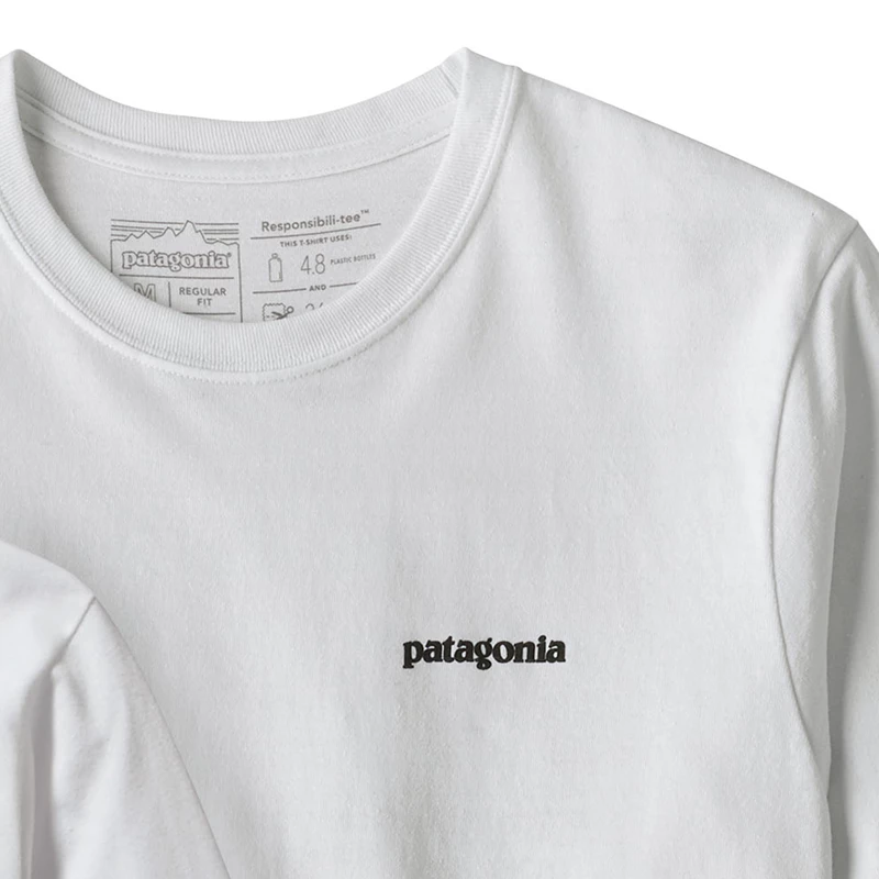 - Design: Classic Patagonia original logo art on the back, small Patagonia logo detail on chest
