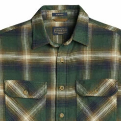 Pendleton Woolen Mills classic fit Board Shirt in Tan / Gold Plaid. Pendleton’s board shirts were made famous by the Beach Boys and these authentic surf shirts are still made from rugged, mid-weight Umatilla wool, from fleece supplied by local ranchers and woven in Pendleton’s American mills.
