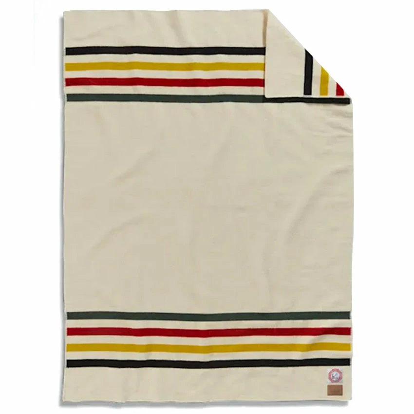 A smaller and easier to transport version of Pendleton’s best selling National Park Blanket, sized perfectly for a sofa or the foot of the bed and with a leather carrier for easy portability. Perfect for a cozy movie night in or an outdoor picnic under the stars, this blanket brings the beauty of Glacier National Park anywhere you go!