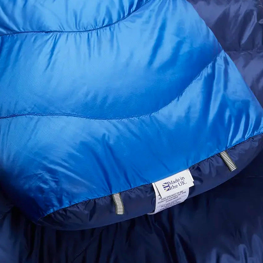 Now built with a recycled nylon lining and recycled Pertex® Quantum outer, it’s wind resistant and a little lighter on the planet too. The down is also finished with a Nikwax, fluorocarbon-free hydrophobic treatment for coping with condensation. Hand-filled in the UK.
